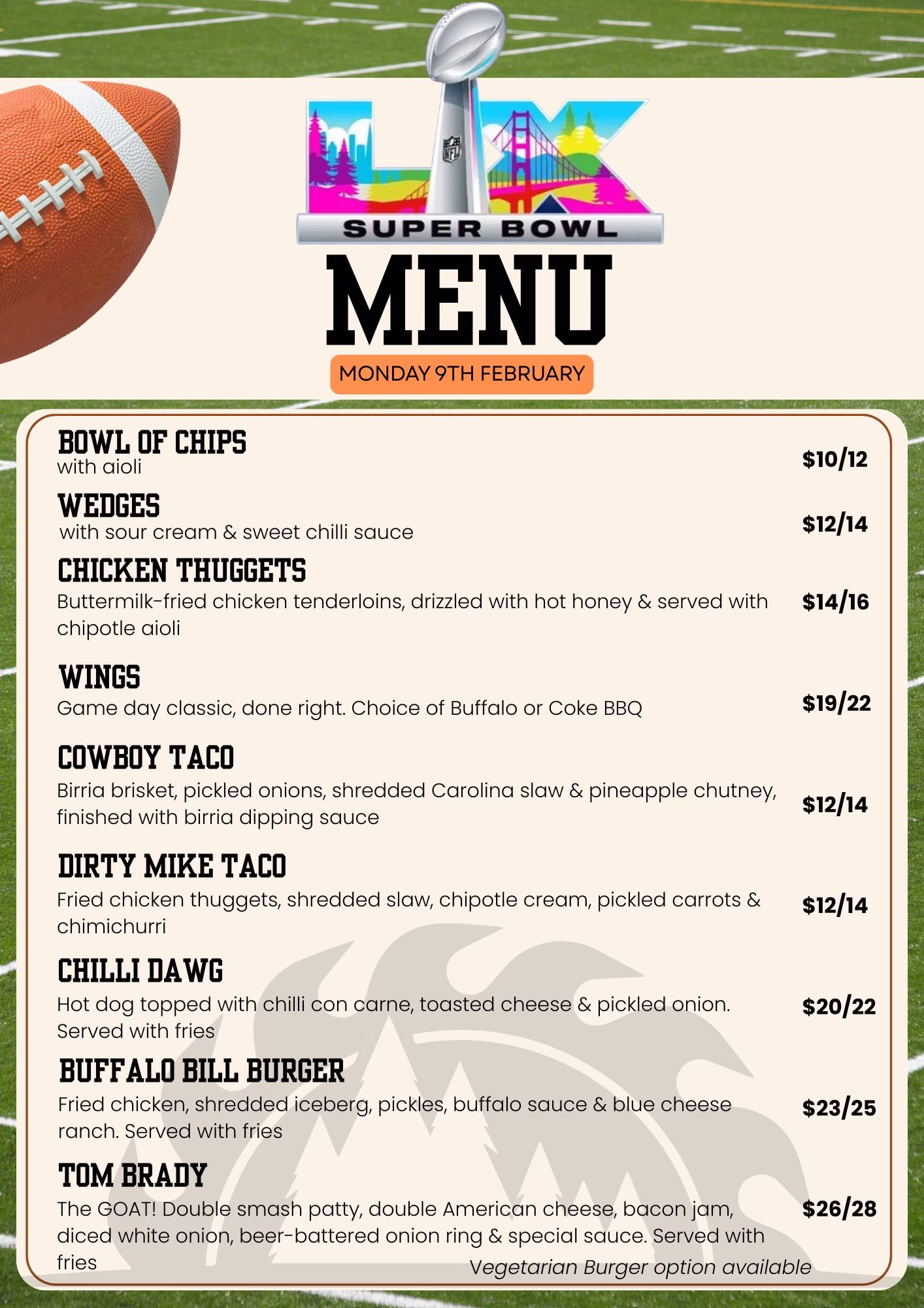๐ Super Bowl Specials Menu from 10am (think American-style wings, ranch, brisket burgers…